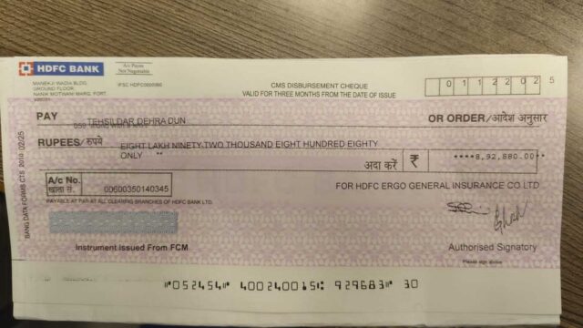 एचडीएफसी आर्गो इंश्योरेंस लिमिटेड जिला प्रशासन के नाम 8,92000 का चेक जमा कराया गया है। जिलाधिकारी सविन बंसल के सख्त रुख से जहां उपभोक्ताओं से ऋण बीमा धोखाधड़ी करने वाली कंपनियां बैक फुट पर है। वहीं जिला प्रशासन के कड़े और निडर फैसलों से असहाय प्रताड़ित महिला, बुजुर्ग, बच्चों को न्यायमिल रहा मिल रहा है। जिला प्रशासन ने नव वर्षीय बालिका की विधवा मां सुप्रिया को प्रताड़ित करने वाली बीमा कंपनी एचडीएफसी आरगो का इलाज कर दिया, बीमा कंपनी के सिर पर कुर्की की तलवार लटक रही है।