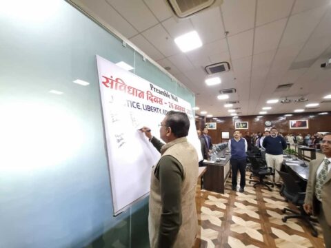 मुख्य सचिव श्री आनन्द बर्द्धन ने बुधवार को सचिवालय में संविधान दिवस के अवसर पर अधिकारियों एवं कर्मचारियों के साथ भारत का संविधान की प्रस्तावना का पाठ किया। इस अवसर पर सभी ने प्रस्तावना पट पर हस्ताक्षर भी किए।